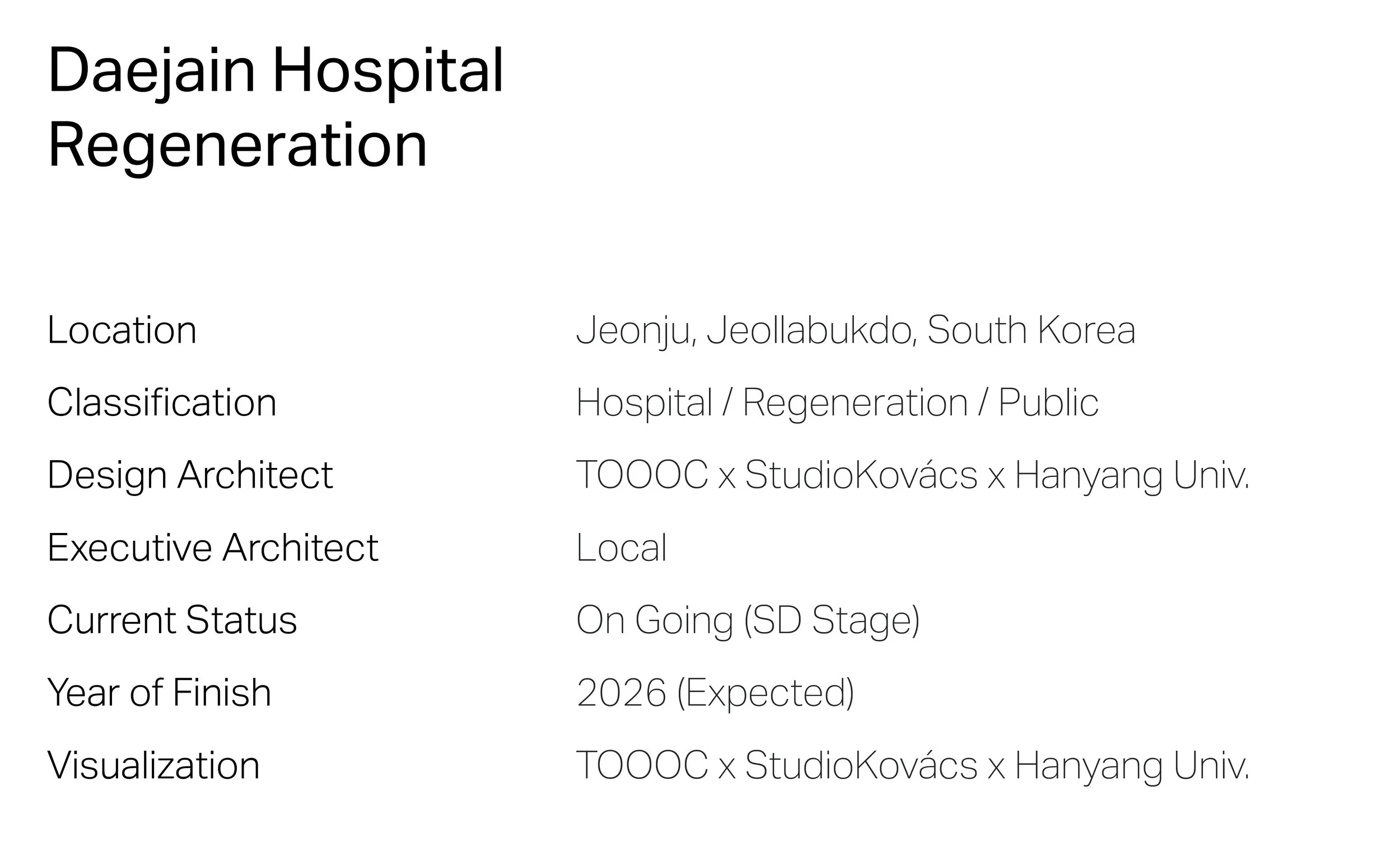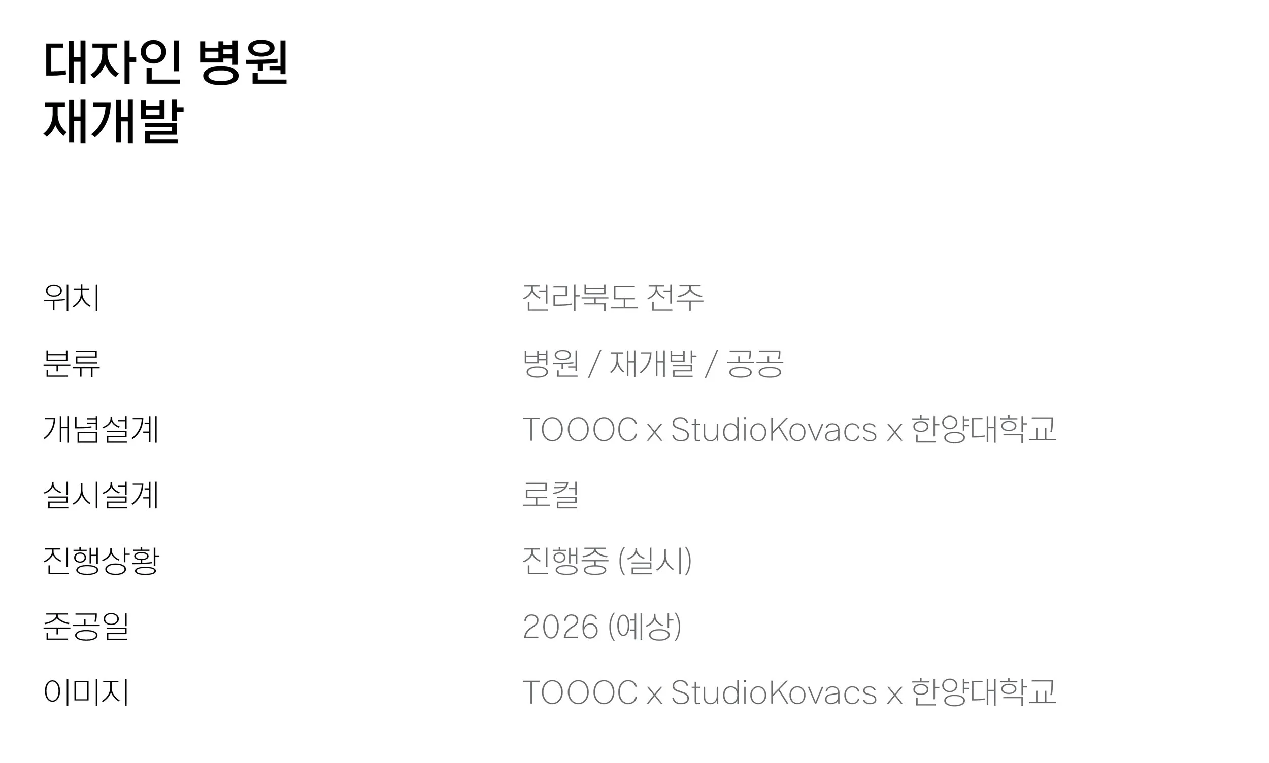 TOOOC(우와우). 대자인 병원 재개발. Daejain Hospital Regeneration 프로젝트. 윤현식 건축가.