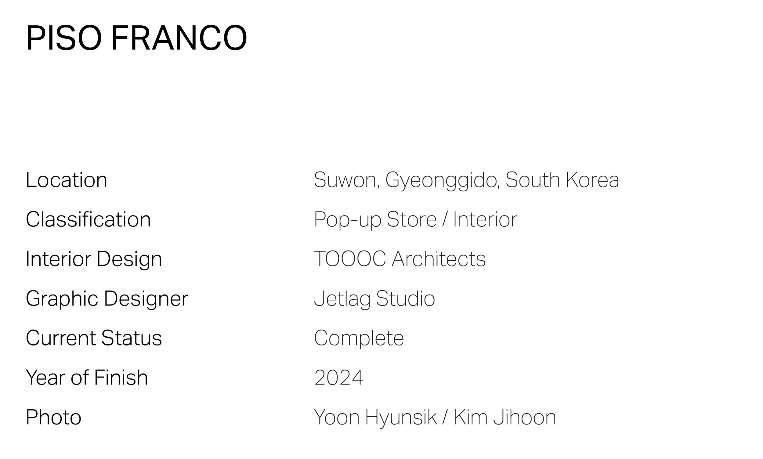 TOOOC(우와우). 피소프랑코. PISO FRANCO 프로젝트. 윤현식 건축가.